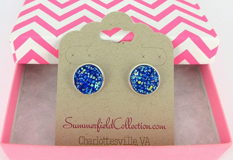 Summerfield Collection Silver-tone Solid AB Faux Druzy Stone Stud Earrings 12mm (Royal Blue)