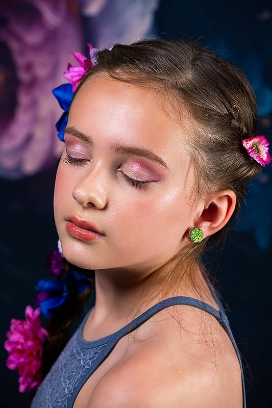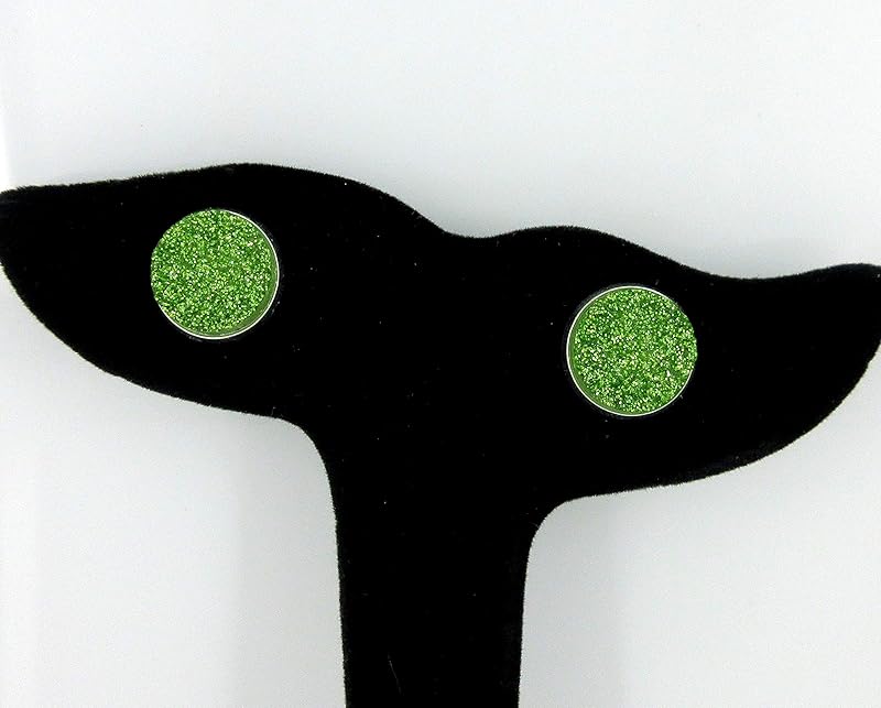 Summerfield Collection Silver-tone Spring Green Glitter Faux Druzy Stone Stud Earrings 12mm