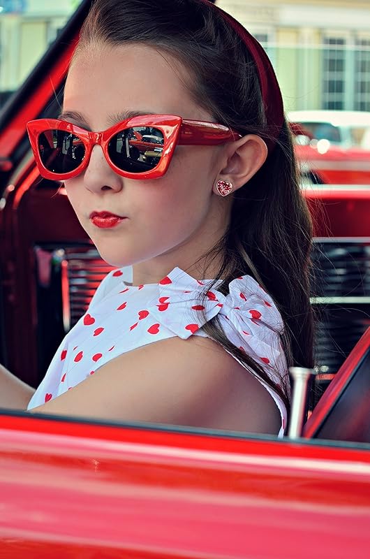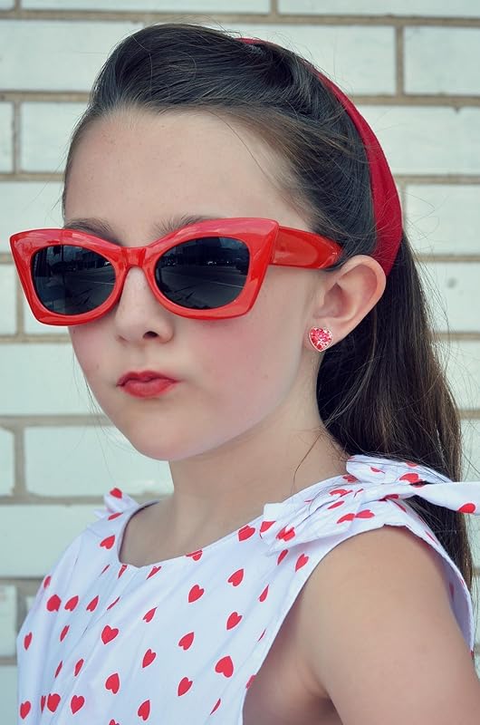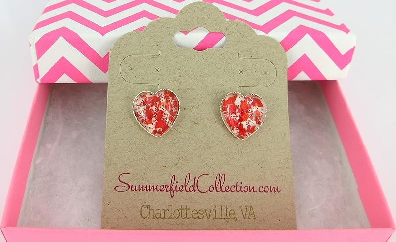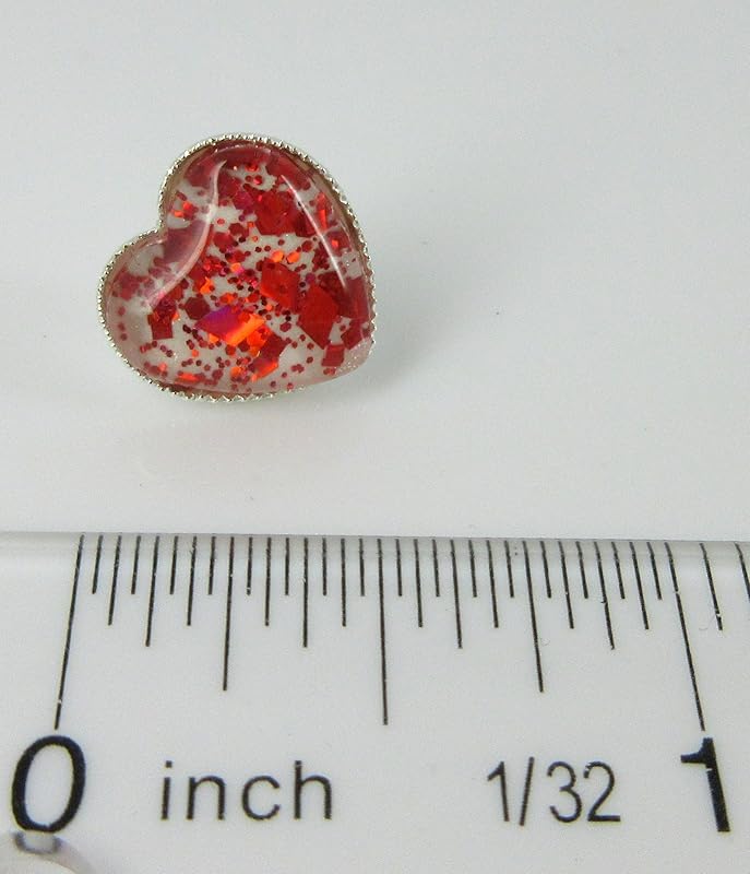 These sparkly glass stud earrings are hand-painted with a pearly white base. They're topped with fiery red glitter flakes in varying shapes and sizes. The glass diameter is appx. 1/2". Set in a shiny silver-tone heart-shaped bezel setting. In stock and ready to ship out. Comes in a gift box for easy gift-giving. They're so unique though, you might be tempted to keep them for yourself! Nickel, Cadmium and Lead safe.