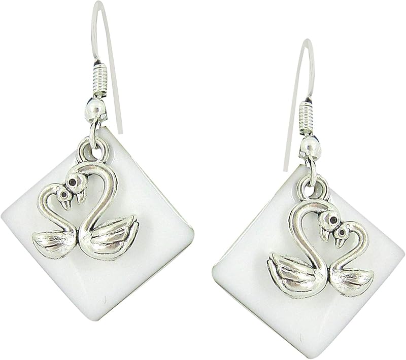 Summerfield Collection Silver-tone White Enamel Swan Charm Dangle Earrings
