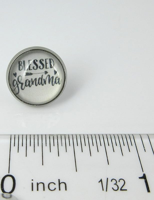 Summerfield Collection Stainless Steel Blessed Grandma Print Glass Stud Earrings 12mm