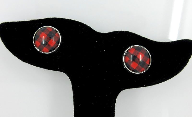 Summerfield Collection Stainless Steel Buffalo Plaid Print Glass Stud Earrings 12mm (Red/Black)