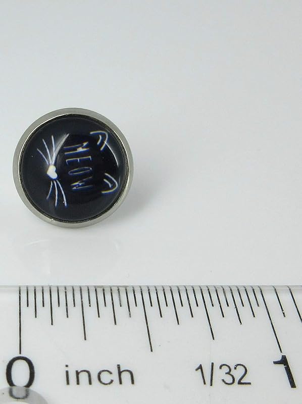 These earrings are so fun! The glass cabochon diameter is appx. 1/2". Set in a round, stainless steel, bezel setting. Hypoallergenic for sensitive ears. In stock and ready to ship out. Comes in a gift box for easy gift-giving. They're so unique though, you might be tempted to keep them for yourself! Nickel, lead and cadmium safe.