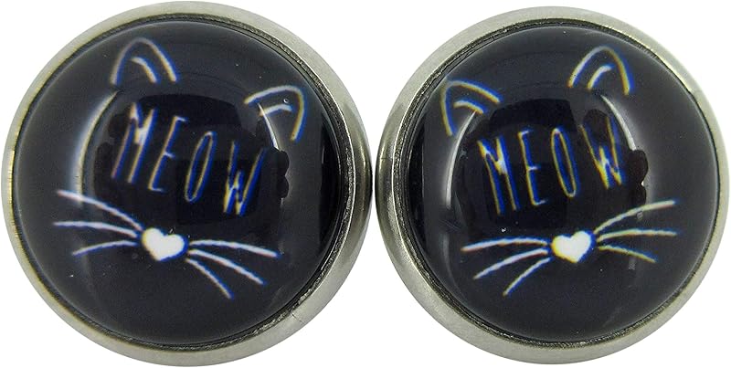 Summerfield Collection Stainless Steel Cat Lover Printed Glass Stud Earrings 12mm (Meow Cat Face)