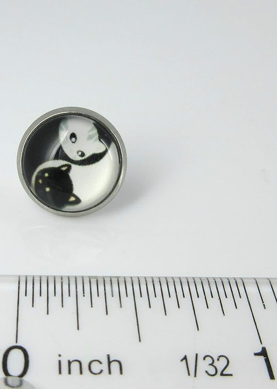 Summerfield Collection Stainless Steel Cat Lover Printed Glass Stud Earrings 12mm (Yin Yang Face)