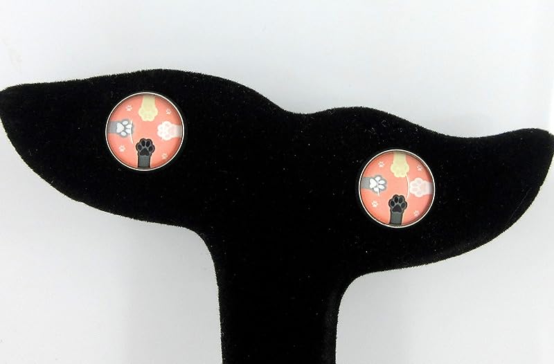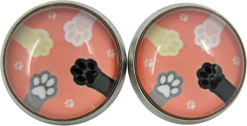 Summerfield Collection Stainless Steel Cat Paw Print Glass Stud Earrings 12mm (Peach)