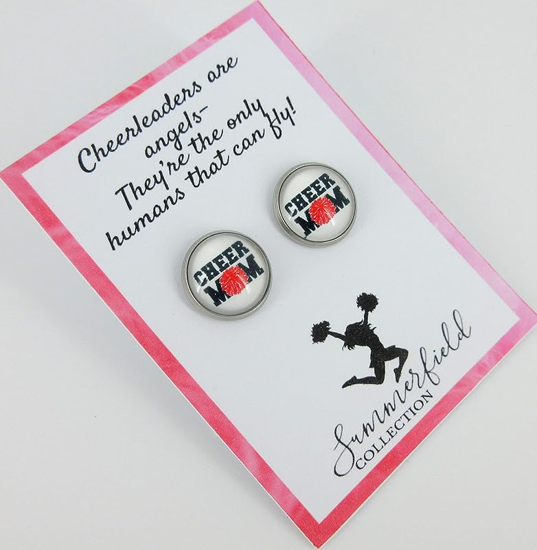 Summerfield Collection Stainless Steel Cheer Printed Glass Stud Earrings 12mm (Cheer Mom)