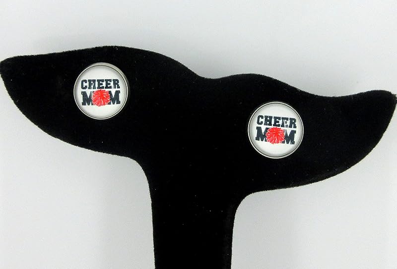 Celebrate your favorite cheerleader! The glass cabochon diameter is appx. 1/2". Set in a round, stainless steel, bezel setting. Hypoallergenic for sensitive ears. In stock and ready to ship out. Comes in a gift box for easy gift-giving. Nickel, lead and cadmium safe.