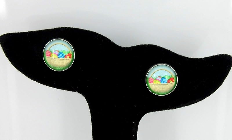 Summerfield Collection Stainless Steel Easter Egg Basket Print Glass Stud Earrings 12mm