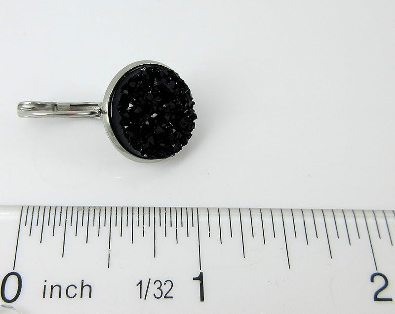Summerfield Collection Stainless Steel Faux Druzy Stone Lever-back Drop Earrings 14mm (Black)