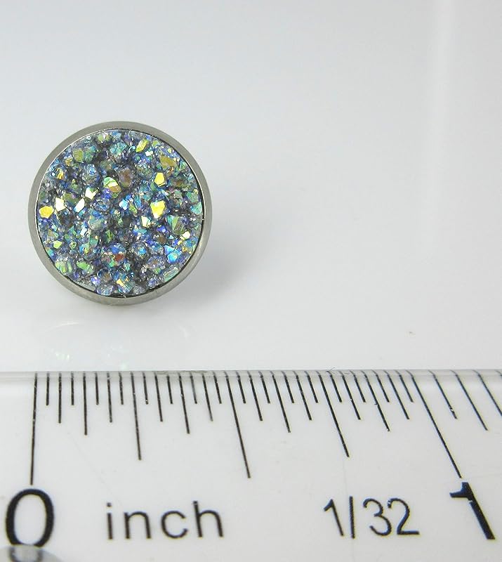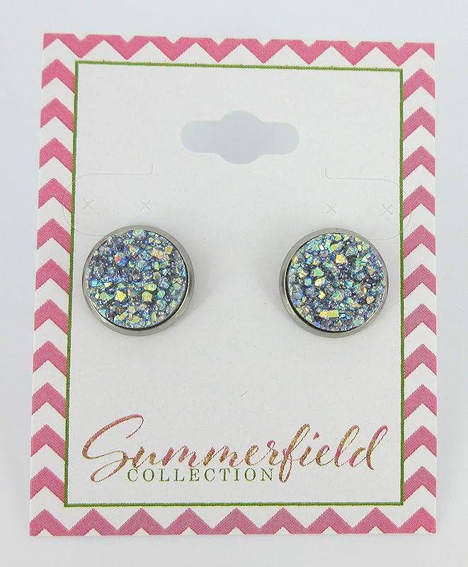 Summerfield Collection Stainless Steel Frost Blue Gray AB Glitter Faux Druzy Stone Stud Earrings (12mm)