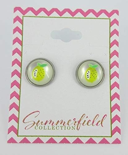 Summerfield Collection Stainless Steel Fruit Print Frosted Resin Stud Earrings 12mm (Lemon)