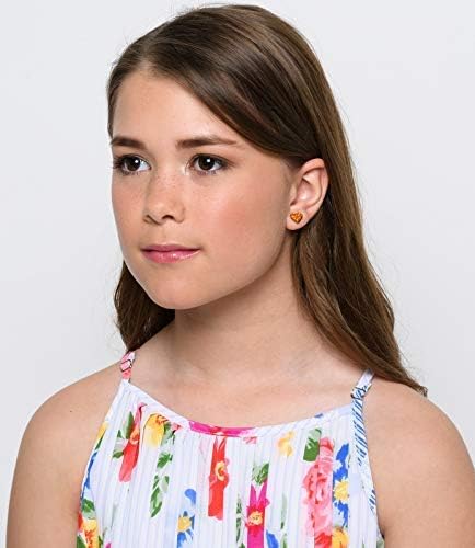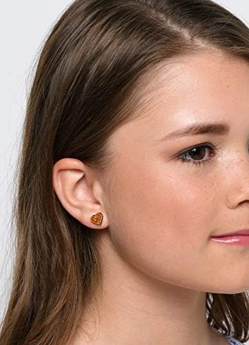 These sweet hearts are appx. 8mm. Set in a surgical stainless steel heart-shaped bezel setting. Surgical stainless steel backings. Hypoallergenic for sensitive ears. In stock and ready to ship out. Comes in a gift box for easy gift-giving. They're so unique though, you might be tempted to keep them for yourself! Nickel, Cadmium and Lead safe.