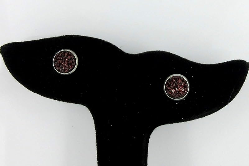 Summerfield Collection Stainless Steel Glitter Faux Druzy Stone Stud Earrings 8mm (Black Cherry)