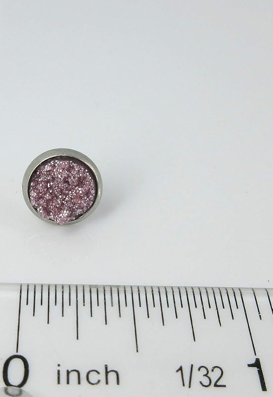 Summerfield Collection Stainless Steel Glitter Faux Druzy Stone Stud Earrings 8mm (Light Lilac)