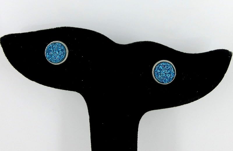 Summerfield Collection Stainless Steel Glitter Faux Druzy Stone Stud Earrings 8mm (Ocean Blue)