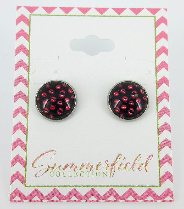 Summerfield Collection Stainless Steel Halloween Printed Glass Stud Earrings 12mm (Vampire Kisses)