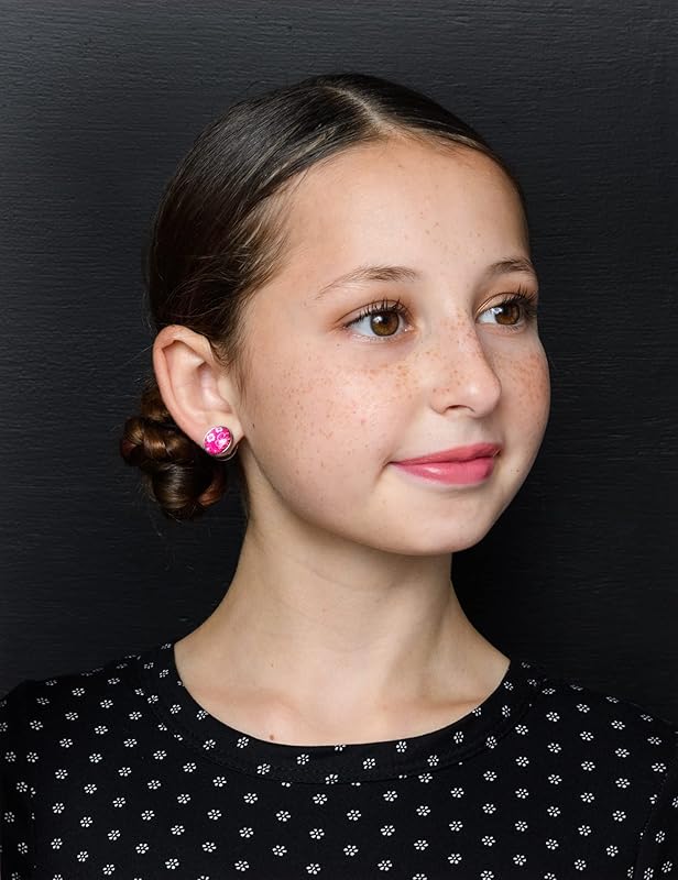 The glass cabochon diameter is appx. 1/2". Set in a round, stainless steel, bezel setting. Hypoallergenic for sensitive ears. In stock and ready to ship out. Comes in a gift box for easy gift-giving. They're so unique though, you might be tempted to keep them for yourself! Nickel, lead and cadmium safe.