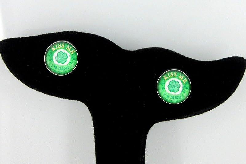 Summerfield Collection Stainless Steel Kiss Me I'm Irish Print Glass Stud Earrings 12mm