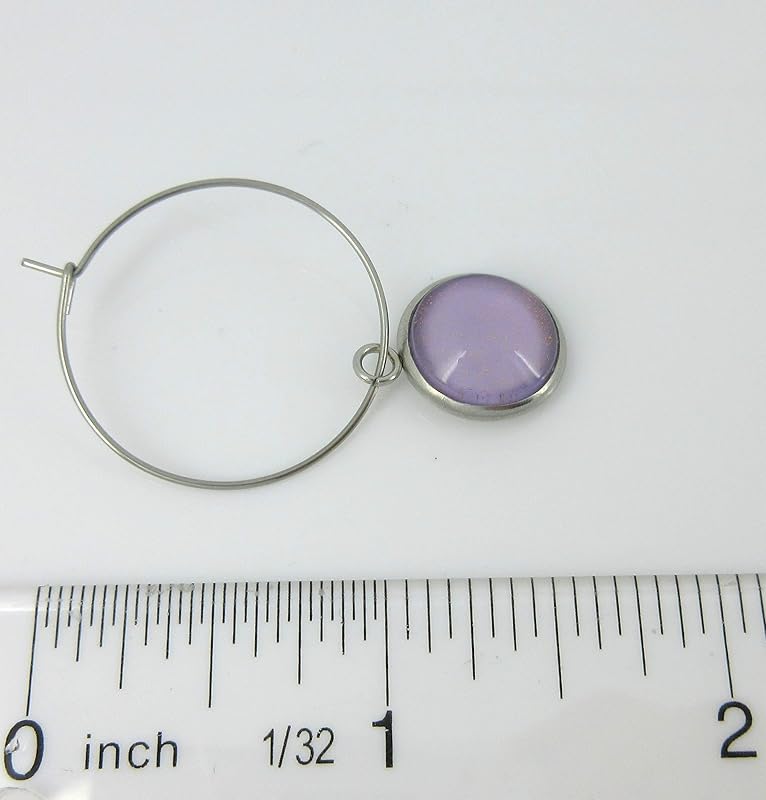 Summerfield Collection Stainless Steel Lavender Purple Glass Charm Hoop Earrings Hand-painted 1"