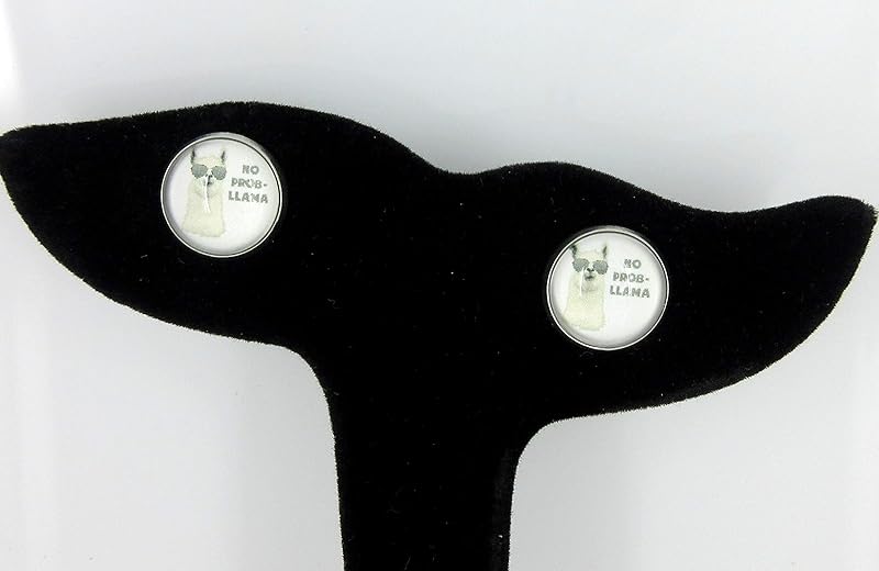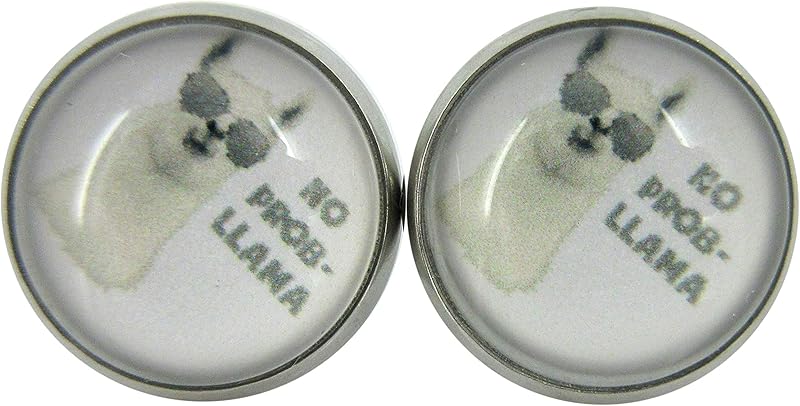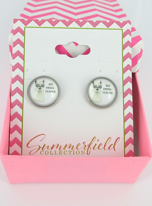 Summerfield Collection Stainless Steel Llama Print Glass Stud Earrings 12mm (No Prob Llama)
