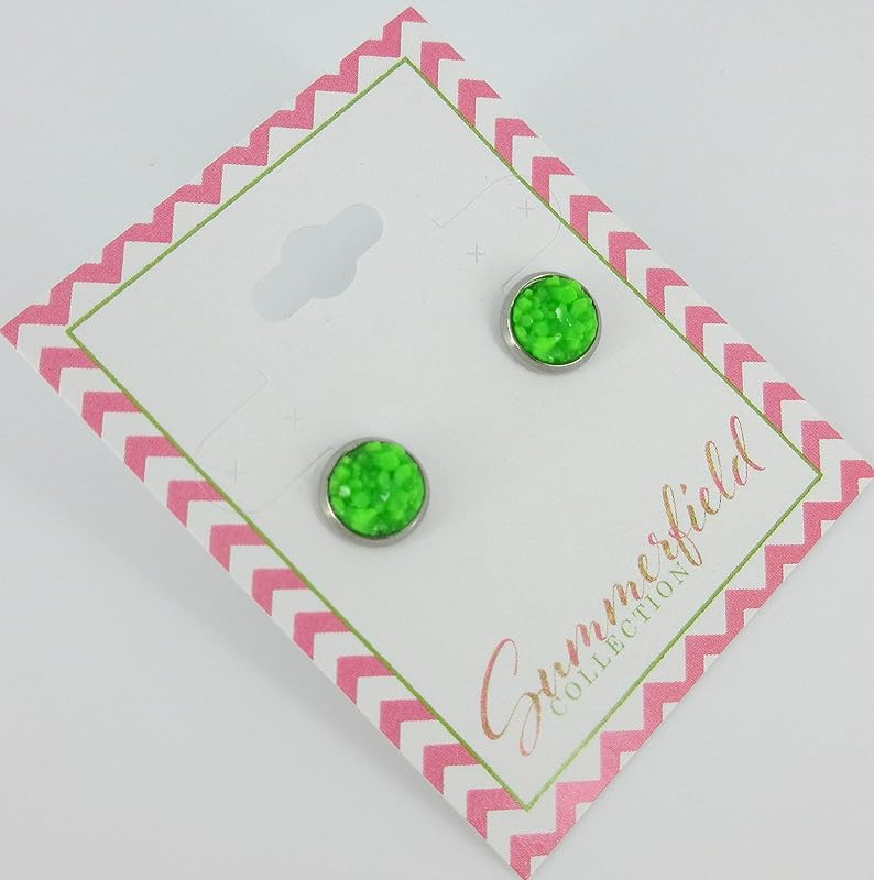 Summerfield Collection Stainless Steel Matte Faux Druzy Stone Stud Earrings 8mm (Green)