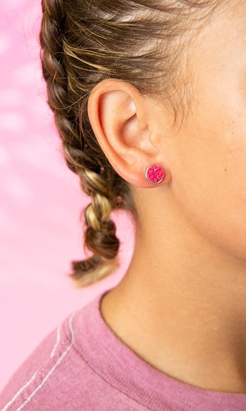 Summerfield Collection Stainless Steel Matte Faux Druzy Stone Stud Earrings 8mm (Magenta Pink)