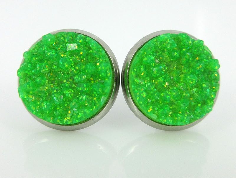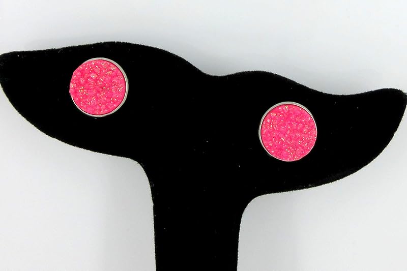 Summerfield Collection Stainless Steel Neon Pink Orange Yellow Green Faux Druzy Glitter Stone Stud Earrings Set (12mm)