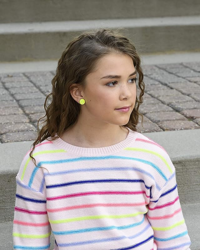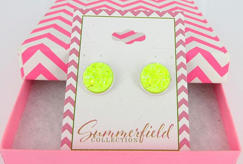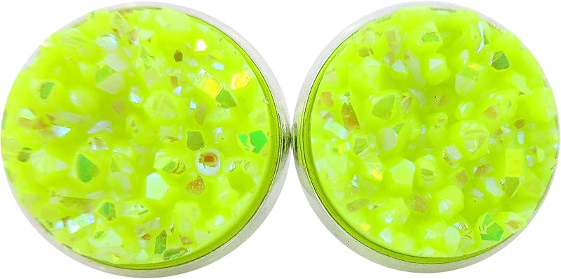 Summerfield Collection Stainless Steel Neon Yellow AB Faux Druzy Stone Stud Earrings (12mm)