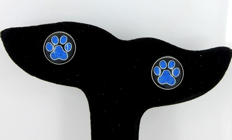 Summerfield Collection Stainless Steel Paw Print Glass Stud Earrings 12mm (Royal Blue)
