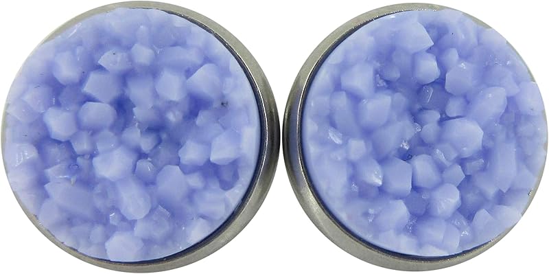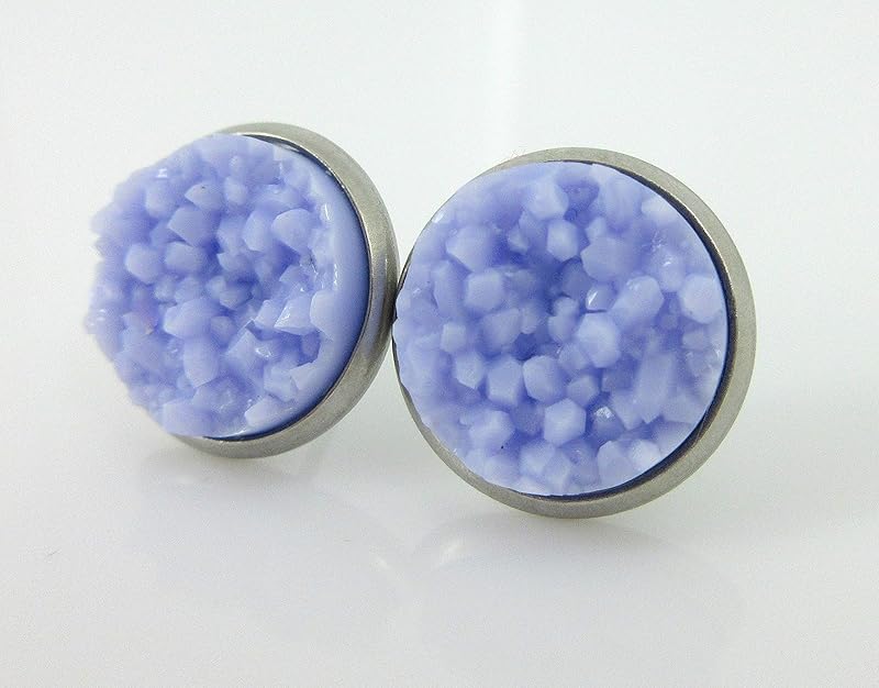 Summerfield Collection Stainless Steel Purple Faux Druzy Stone Stud Earrings 12mm (Periwinkle)