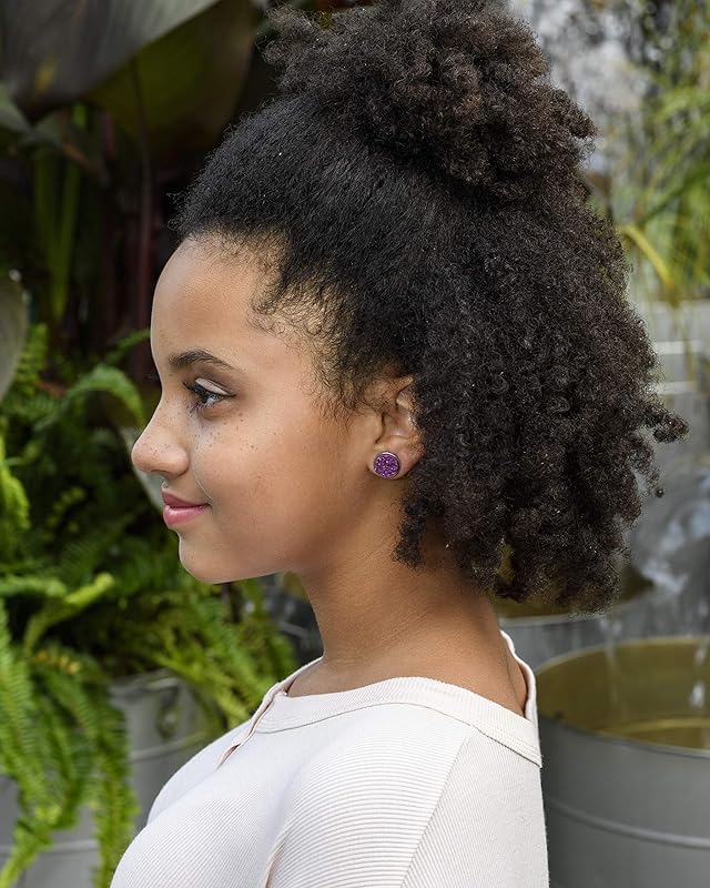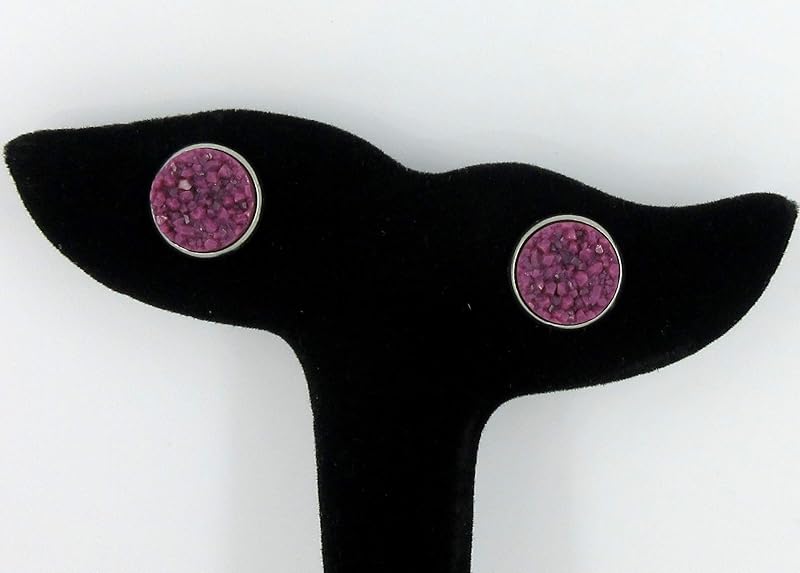 Summerfield Collection Stainless Steel Purple Faux Druzy Stone Stud Earrings 12mm (Plum)