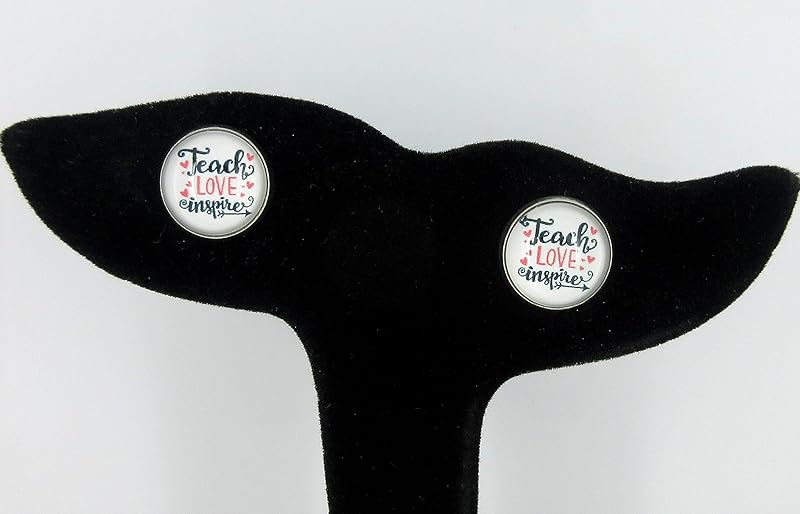 Summerfield Collection Stainless Steel Teacher Print Glass Stud Earrings 12mm (Teach Love Inspire)
