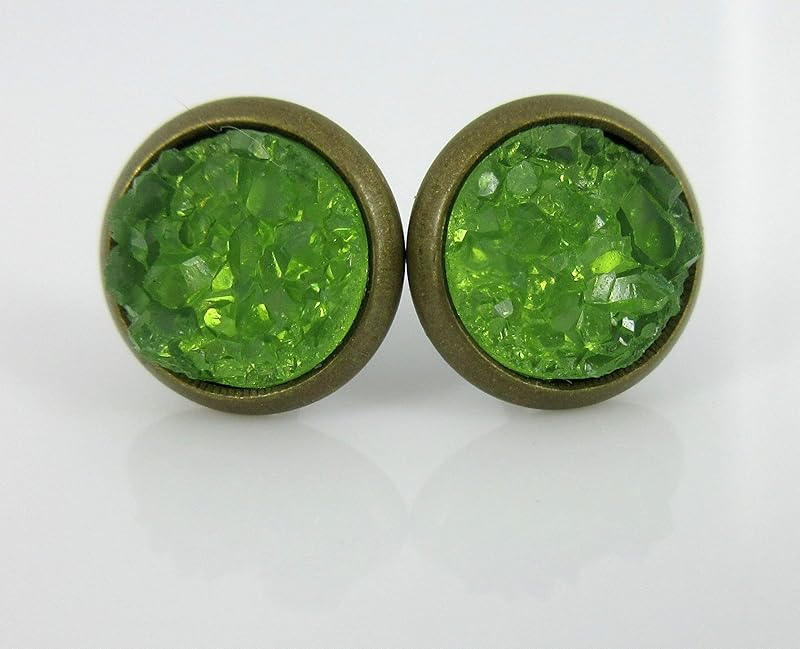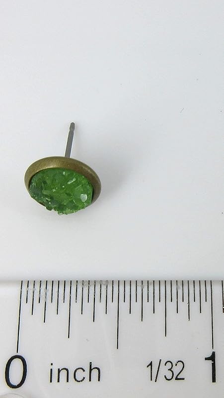 Translucent like rock candy. The stone diameter is 8mm, appx. 3/8". Set in an antiqued gold-tone round bezel setting. Post closure. These are really versatile and I'm sure will be a new favorite! In stock and ready to ship out. Comes in a gift box for easy gift-giving. They're so fun though, you might be tempted to keep them for yourself!