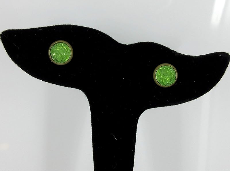 Summerfield Collection Trio Antiqued Gold-tone Stud Earrings 8mm Faux Druzy Stone Set (Green/Yellow/Blue)