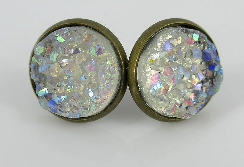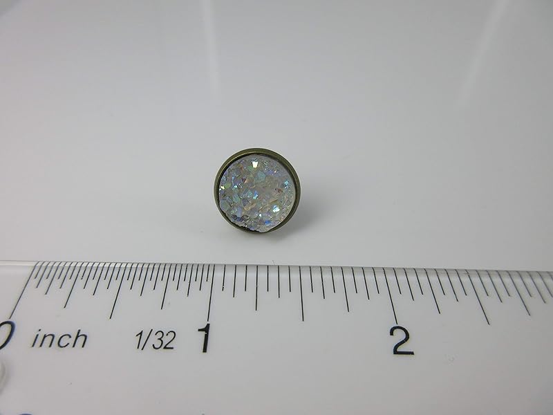 These earrings are so pretty and versatile! The diameter is appx. 1/2". Set in an antiqued gold-tone round bezel setting. Post closure with bullet disc backing. In stock and ready to ship out. Comes in a gift box for easy gift-giving. Nickel, Cadmium and Lead safe.